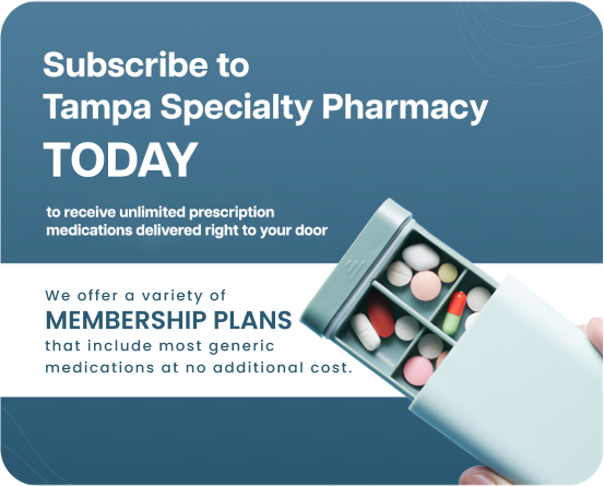 Tampa Specialty Pharmacy subscription plan is an affordable, transparent, and convenient annual plan. It has a list of commonly prescribed medicines with lower cost than your copayment from your insurance and cheaper for uninsured people. You can get unlimited medicines listed in the subscription plan for $0.
